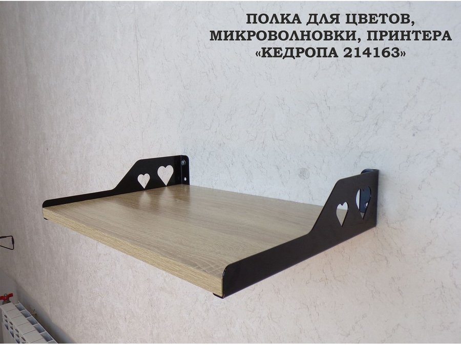 Полка для цветов, микроволновки, принтера "КЕДРОПА-214163" размер 40х30х10 см, дуб сонома, сердце