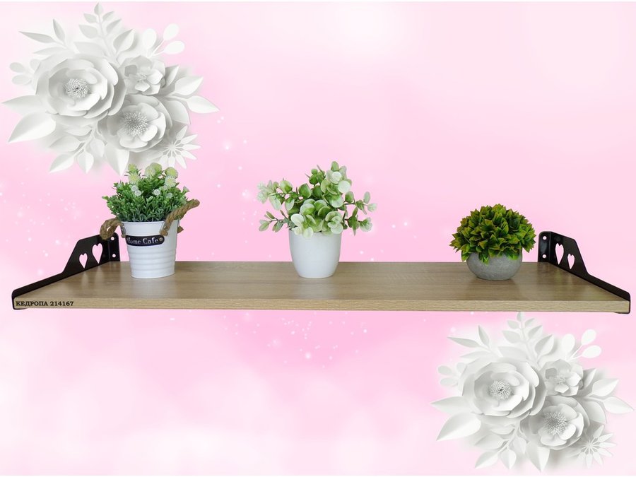Полка для цветов, микроволновки, принтера "КЕДРОПА-214167" размер 90х30х10 см, дуб сонома, сердце