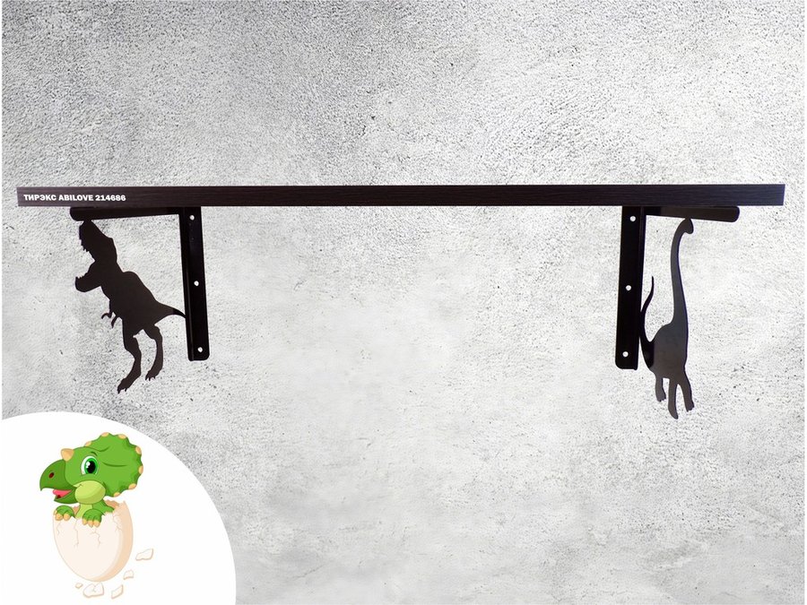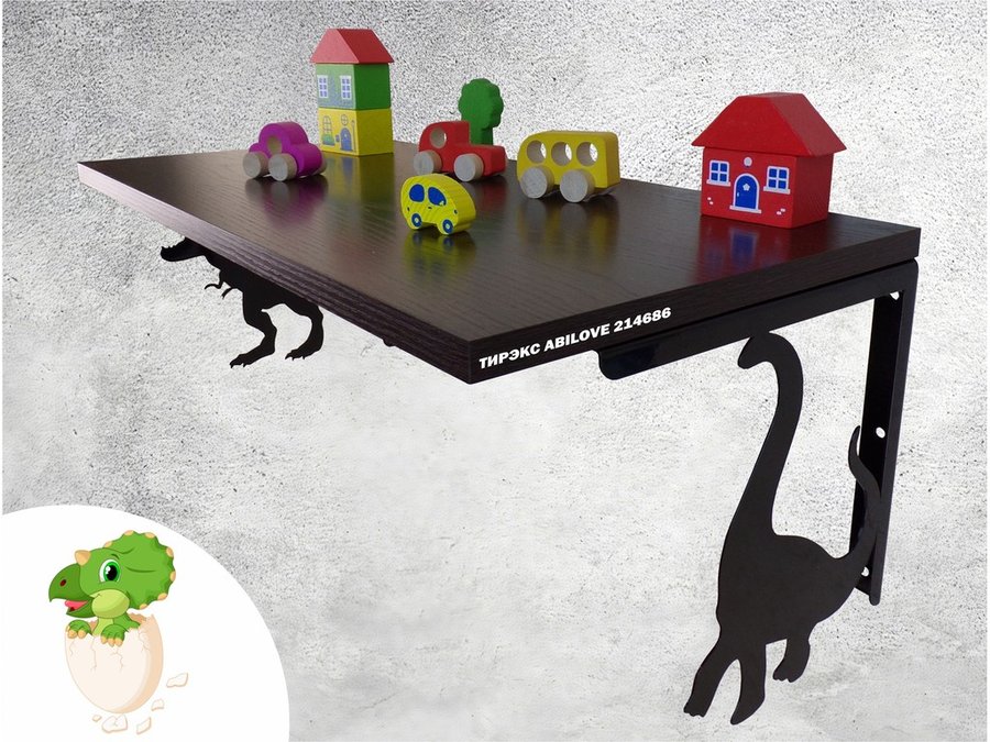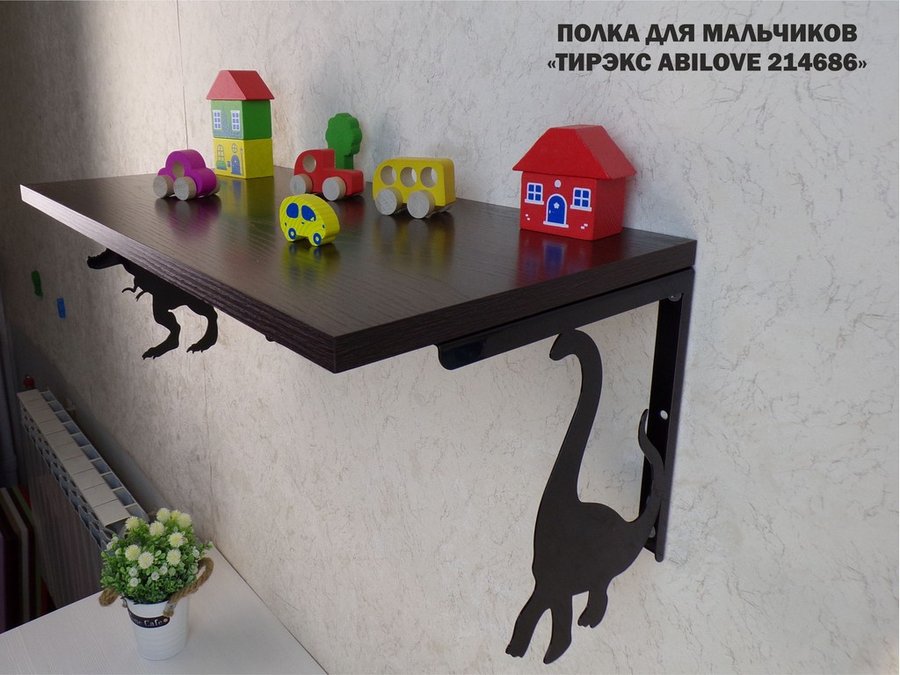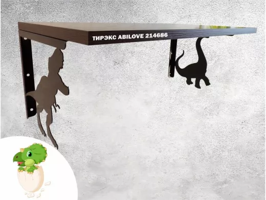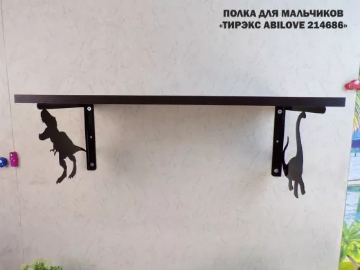 Полка с динозаврами "ТИРЭКС ABILOVE-214686" для конструкторов, машинок, венге, 30х60см