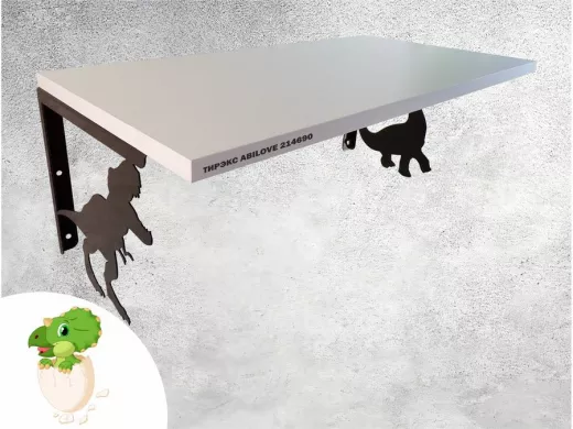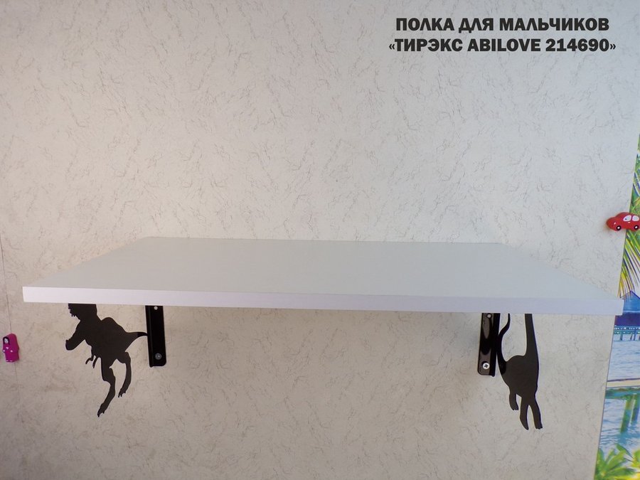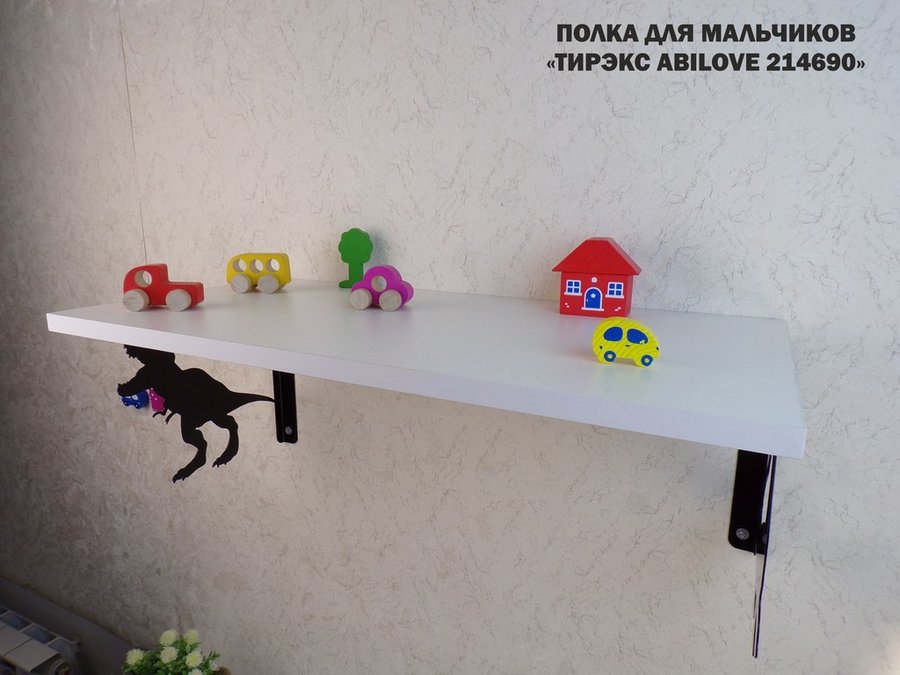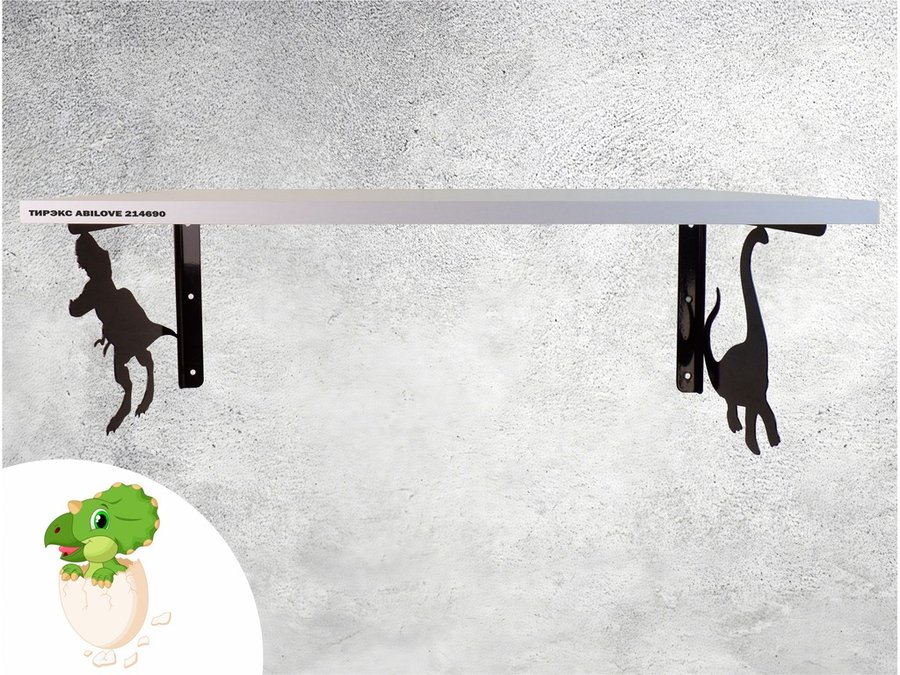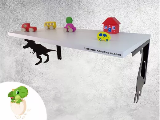 Полка с динозаврами "ТИРЭКС ABILOVE-214690" для конструкторов, машинок, белый, 30х60см