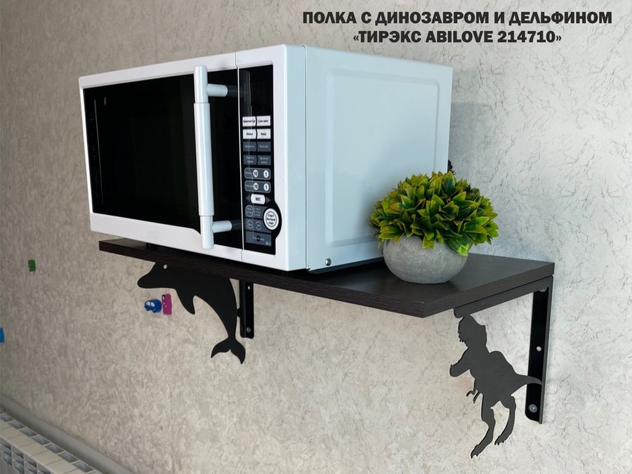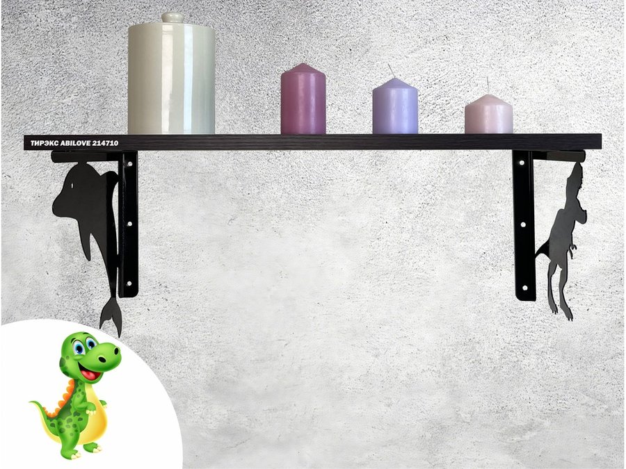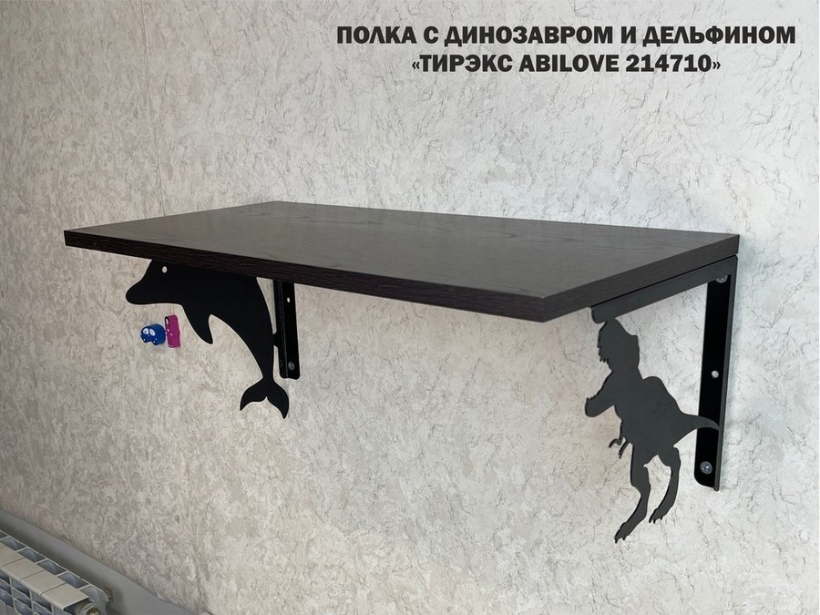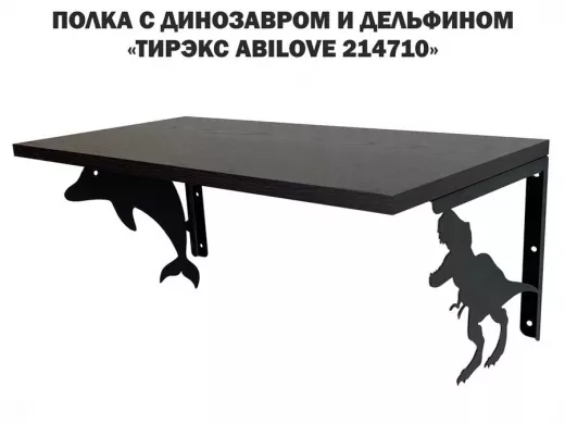 Полка с динозавром и дельфином "ТИРЭКС ABILOVE-214710" для игрушек, венге, 30х60см