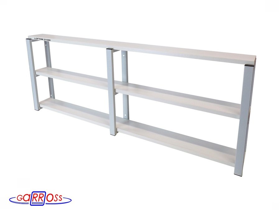Полка для вина и бокалов, высота 42см, 3 уровня, размер 10х120см, серая "LOFTOM 211568" сосна