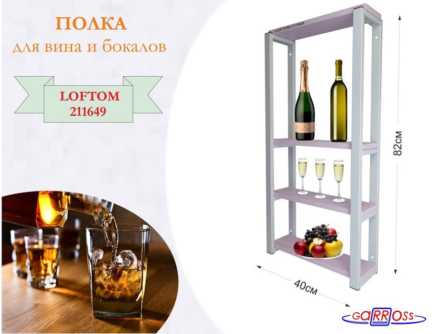 Полка для вина и бокалов, высота 82см, 4 уровня, размер полки 10х40см, серая "LOFTOM 211649" лаванда