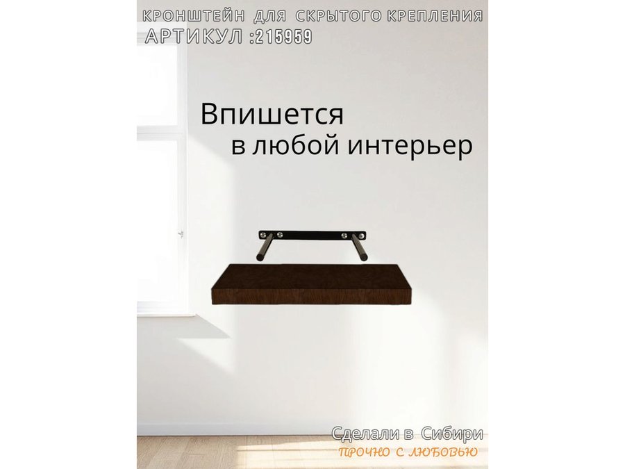 - Кронштейн предназначен для скрытого крепления полок, изготовленных из различных материалов: МДФ, ДСП, дерево, пластик.