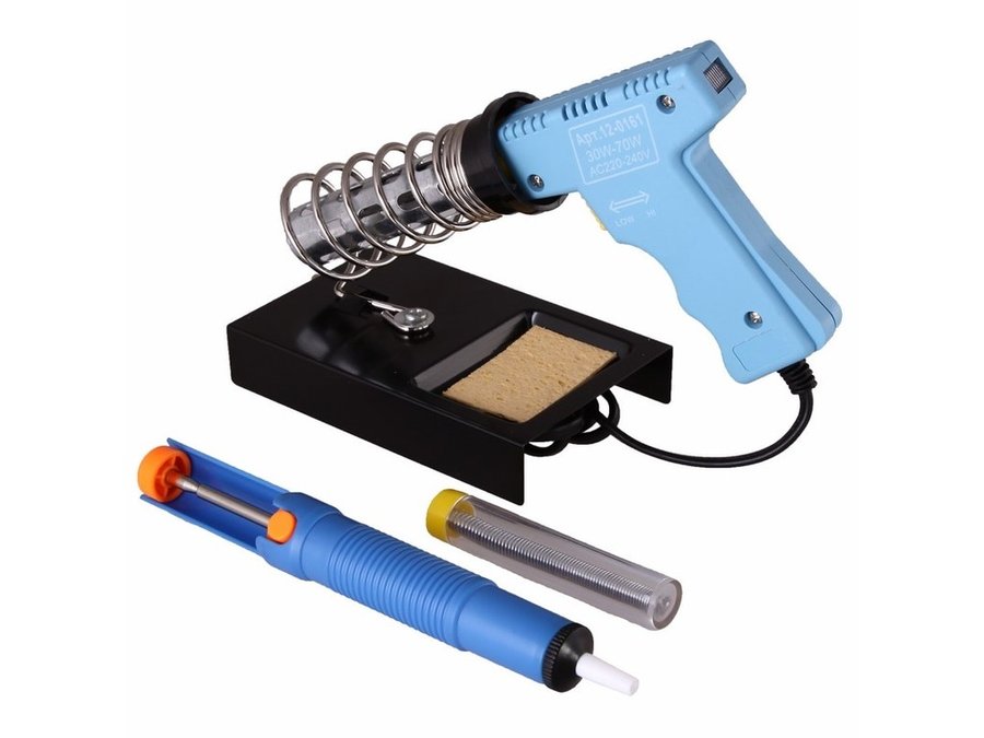 В корзину Купить в 1 клик Набор для пайки (паяльник импульс. 30/70Вт, оловоотсос, подставка) ZD-303A REXANT