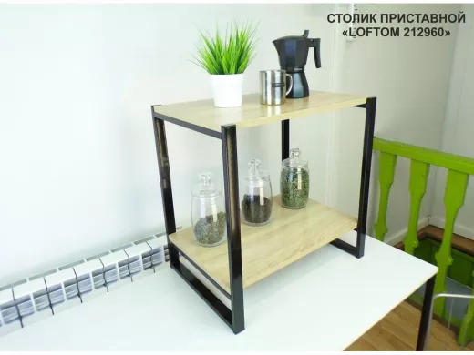 Журнальный приставной столик LOFTOM прекрасно впишется в любое пространство. Столик украсит Вашу гостиную, спальню или коридор. Можно использовать как придиванный кофейный столик, прикроватный столик для завтрака или как стол журнальный приставной. Важно отметить, что прикроватный столик занимает немного пространства, поэтому ему найдётся место даже в самой малогабаритной квартире. Прикроватный/журнальный столик, в стиле Лофт, может быть использован в качестве подставки для цветов и книг, места для работы, места для хранения мелочей. Столик, без труда, можно перенести в любое место.