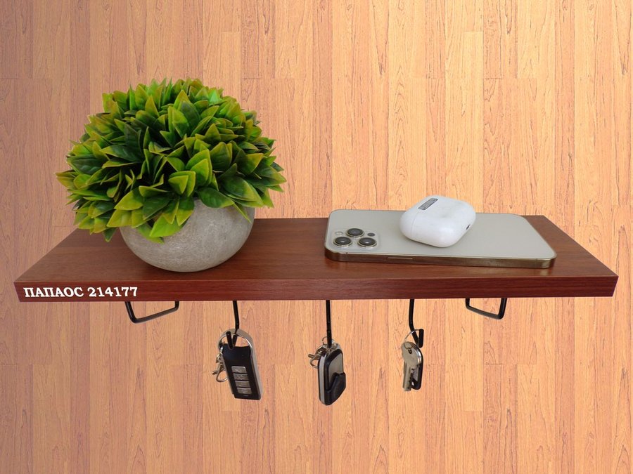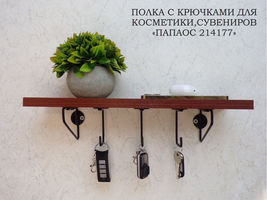 Ключница, полка с крючками в прихожую 40х10 см, высота 9 см, черный "ПАПАОС 214177" орех