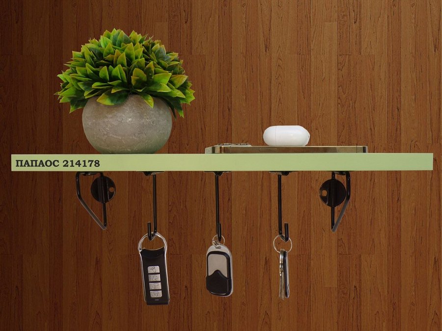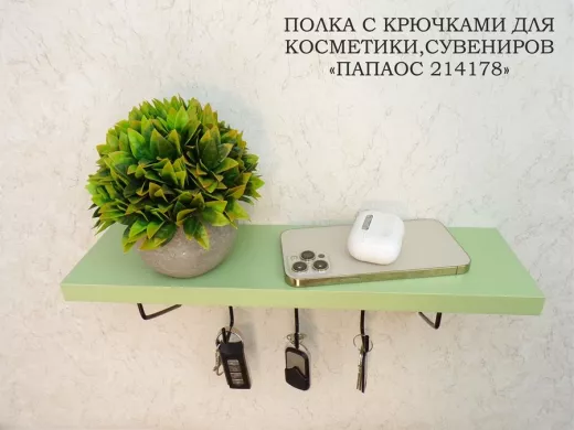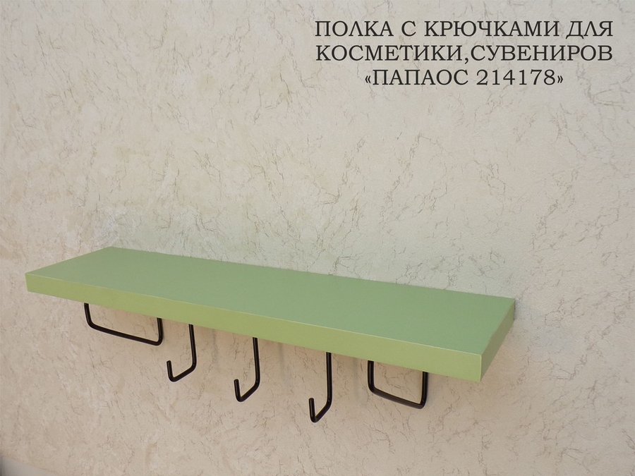 Ключница, полка с крючками в прихожую 40х10 см, высота 9 см, черный "ПАПАОС 214178" салатовый