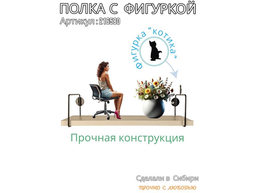 Полка с фигуркой котика "ABILOVE-216580" размер 10х40см ,черный ,сосна выбеленная