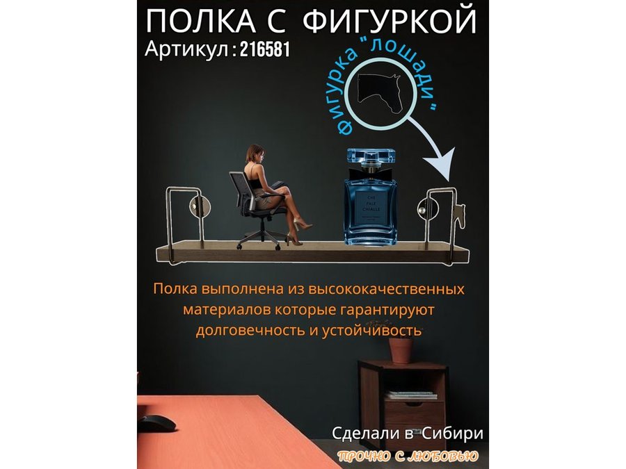 Полка с фигуркой лошади "ABILOVE-216581" размер 10х40см ,черный ,венге