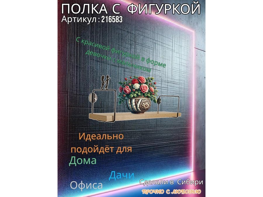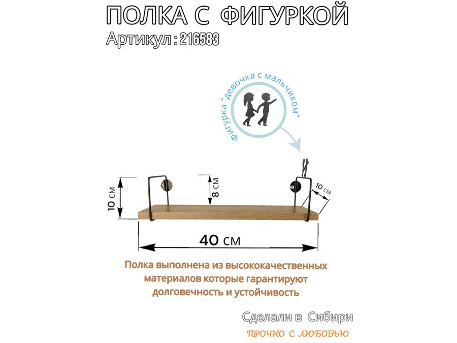 Полка с фигуркой девочки с мальчиком "ABILOVE-216583" размер 10х40см ,черный ,дуб сонома