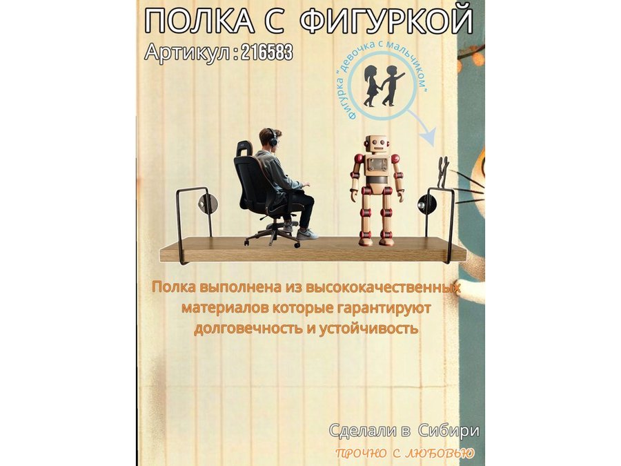 Интересная полка с фигуркой, позволит разнообразить интерьер, сделать его непохожим, уникальным, запоминающимся.