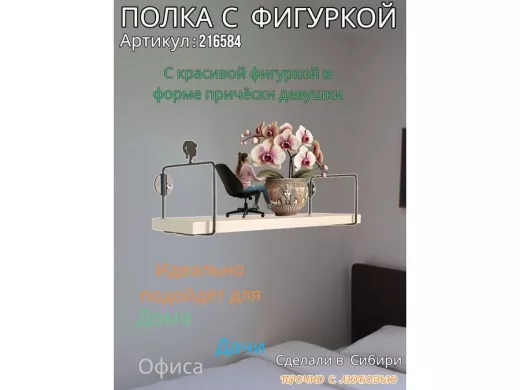 Полка с фигуркой прически девушки "ABILOVE-216584" размер 10х40см ,черный ,сосна выбеленная