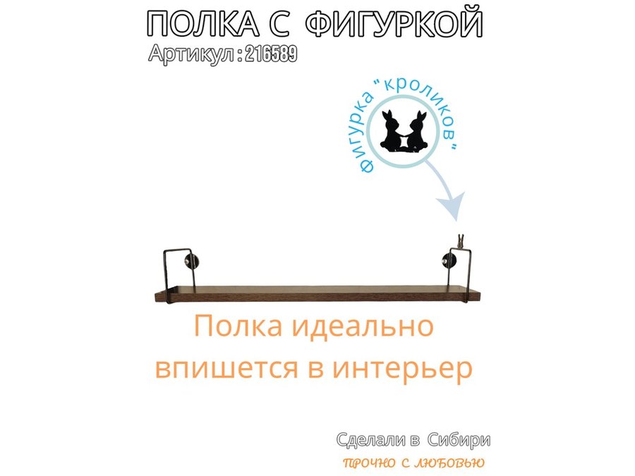 Полка с фигуркой кроликов "ABILOVE-216589" размер 10х60см ,черный ,венге