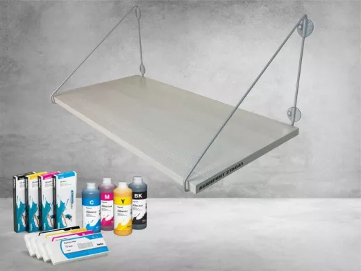 Полка надежно крепится к стене при помощи анкеров или шурупов с дюбелями, на ней можно разместить принтер, сканер, МФУ и многое другое