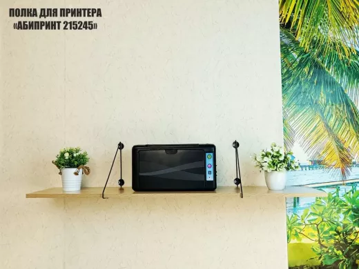 - Полка надежно крепится к стене при помощи анкеров или шурупов с дюбелями, на ней можно разместить принтер, бумагу