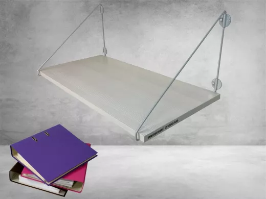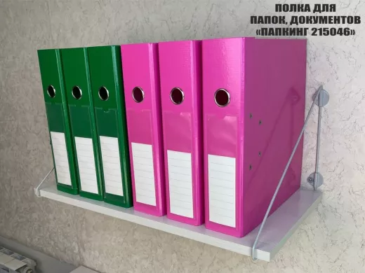- Полка надежно крепится к стене при помощи анкеров или шурупов с дюбелями, на ней можно разместить папки, документы,бумагу и многое другое