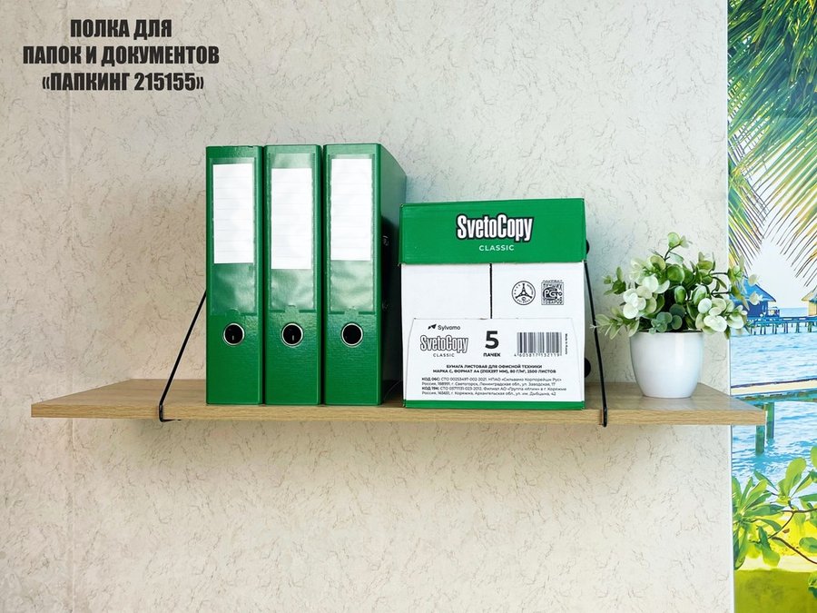 Полка для папок и документов "ПАПКИНГ 215155" высота 26 см размер 90x30 черный и дуб сонома