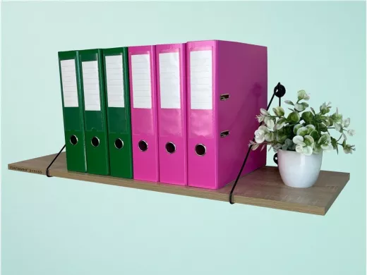 - Полка надежно крепится к стене при помощи анкеров или шурупов с дюбелями, на ней можно разместить папки, документы