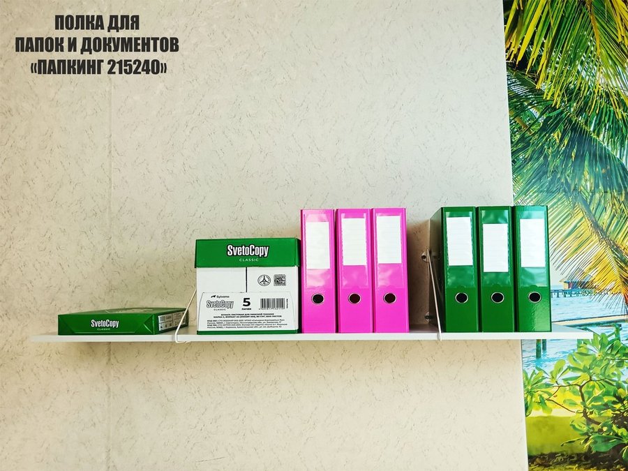 Полка для папок и документов "ПАПКИНГ 215240" высота 26 см размер 120x30 белый и сосна выбеленная