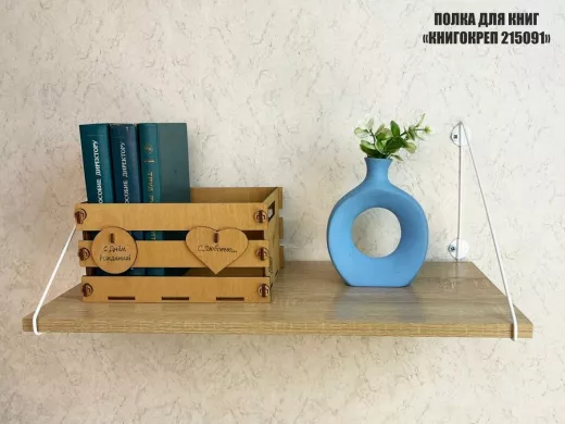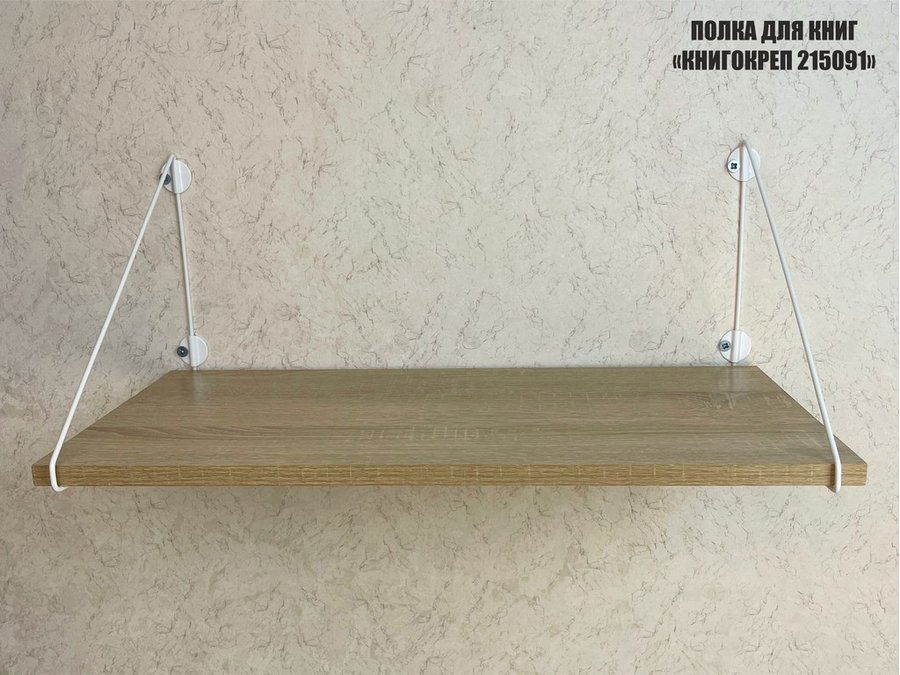 Полка для книг "КНИГОКРЕП 215091" высота 26 см размер 60х30 см белый и дуб сонома