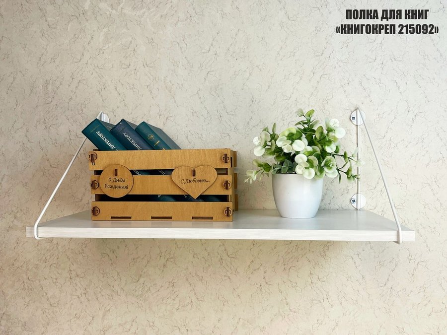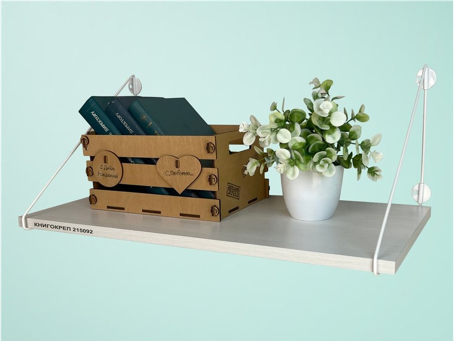 Полка для книг "КНИГОКРЕП 215092" высота 26 см размер 60х30 см белый и сосна выбеленная
