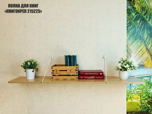 Полка для книг "КНИГОКРЕП 215225" высота 26 см размер 120х30 см белый и дуб сонома