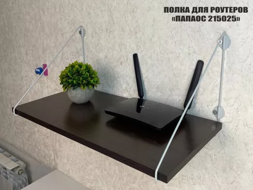 Полка надежно крепится к стене при помощи анкеров или шурупов с дюбелями, на ней можно разместить роутер и многое другое