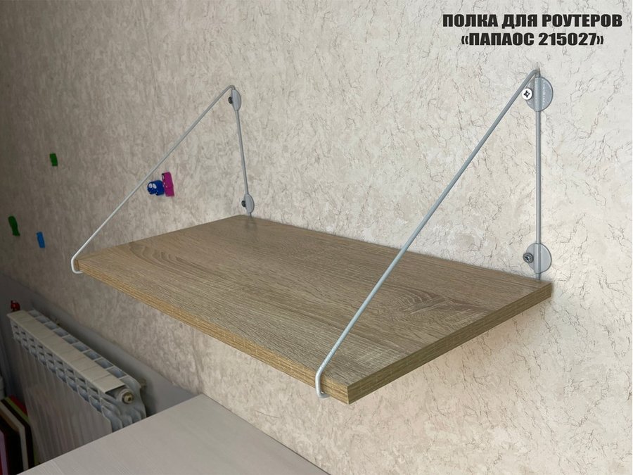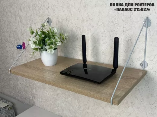 Полка надежно крепится к стене при помощи анкеров или шурупов с дюбелями, на ней можно разместить роутер и многое другое