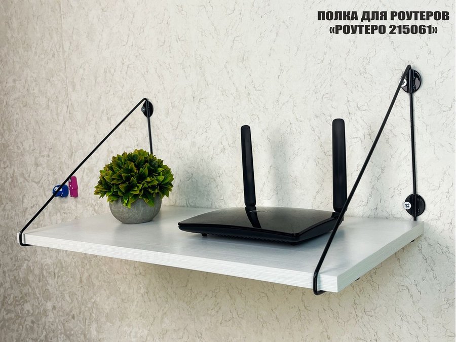 - Полка надежно крепится к стене при помощи анкеров или шурупов с дюбелями, на ней можно разместить роутер
