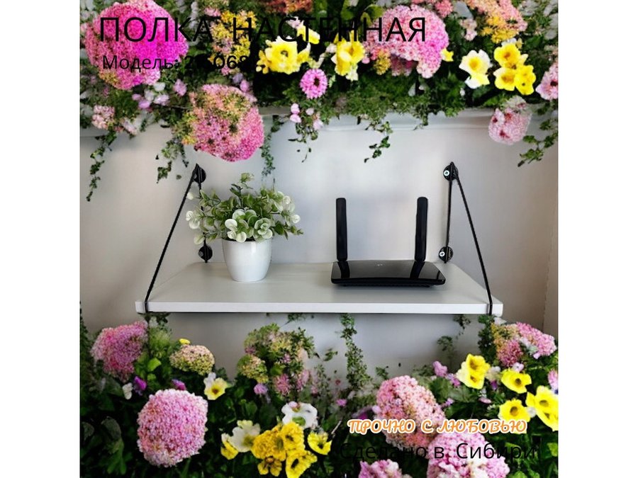 - Полка надежно крепится к стене при помощи анкеров или шурупов с дюбелями, на ней можно разместить роутер и многое другое