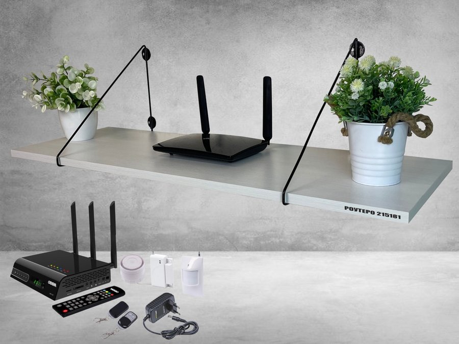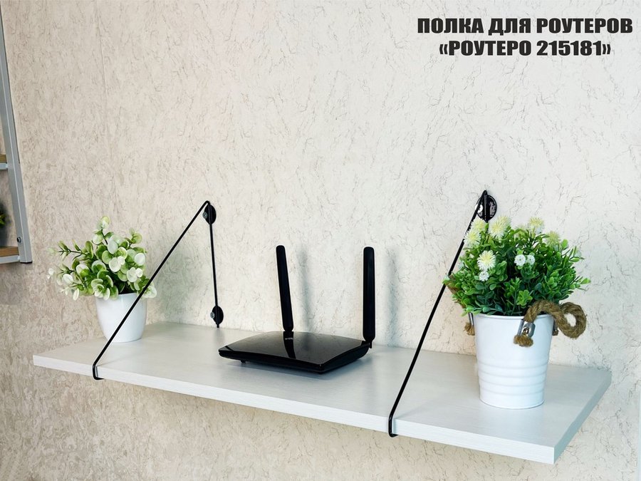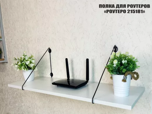 - Полка надежно крепится к стене при помощи анкеров или шурупов с дюбелями, на ней можно разместить роутер