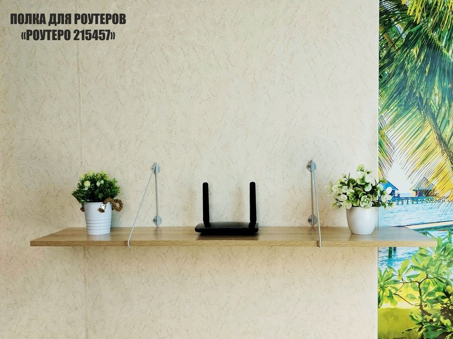 Полка надежно крепится к стене при помощи анкеров или шурупов с дюбелями, на ней можно разместить принтер, бумагу