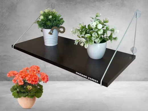 Полка надежно крепится к стене при помощи анкеров или шурупов с дюбелями, на ней можно разместить цветы, сувениры, фотографии и многое другое