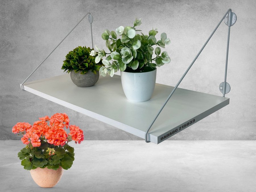 Полка для цветов "МАЙЦВЕТ 215033" высота 26 см размер 60х30 см серый и белый шагрень