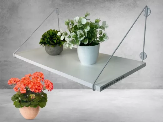 Полка надежно крепится к стене при помощи анкеров или шурупов с дюбелями, на ней можно разместить цветы, сувениры, фотографии и многое другое
