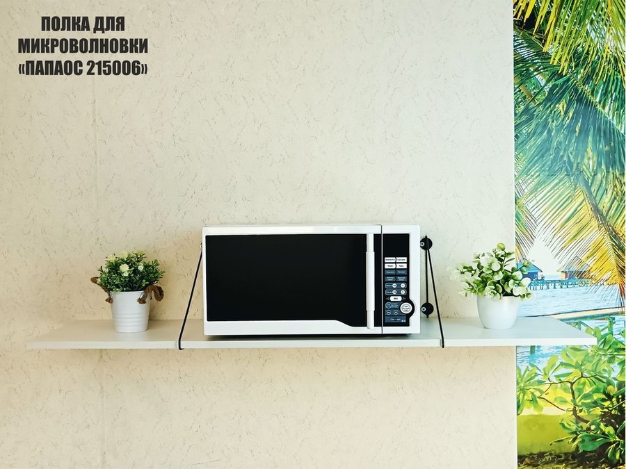 Полка для микроволновки "ПАПАОС 215006" высота 26 см размер 120х30 см черный и сосна выбеленная