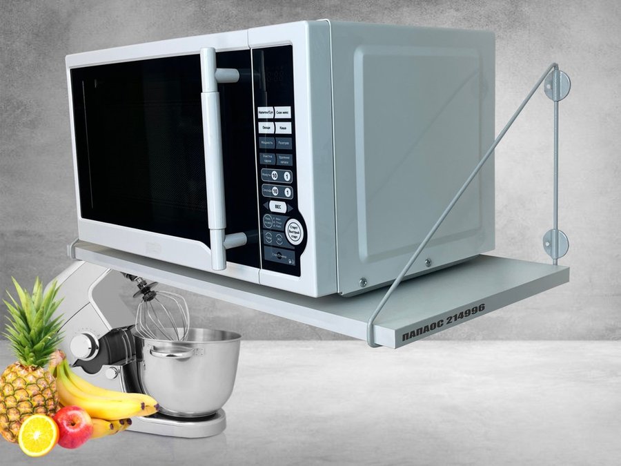 Полка для микроволновки размер 60х30 см "ПАПАОС 214996" высота 26 см серый и белый шагрень