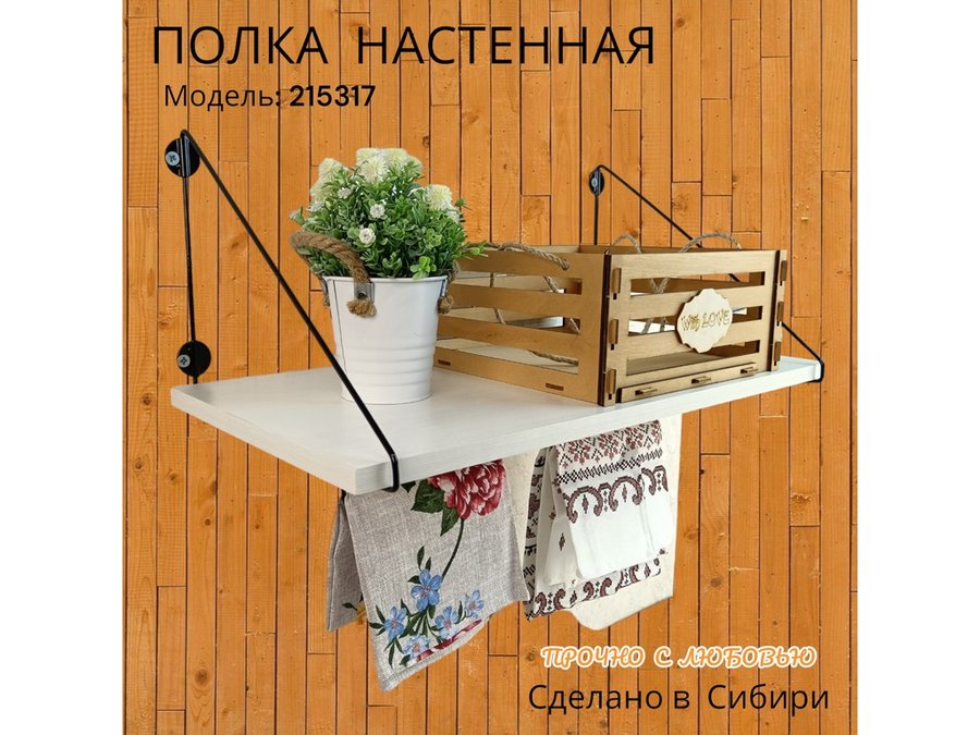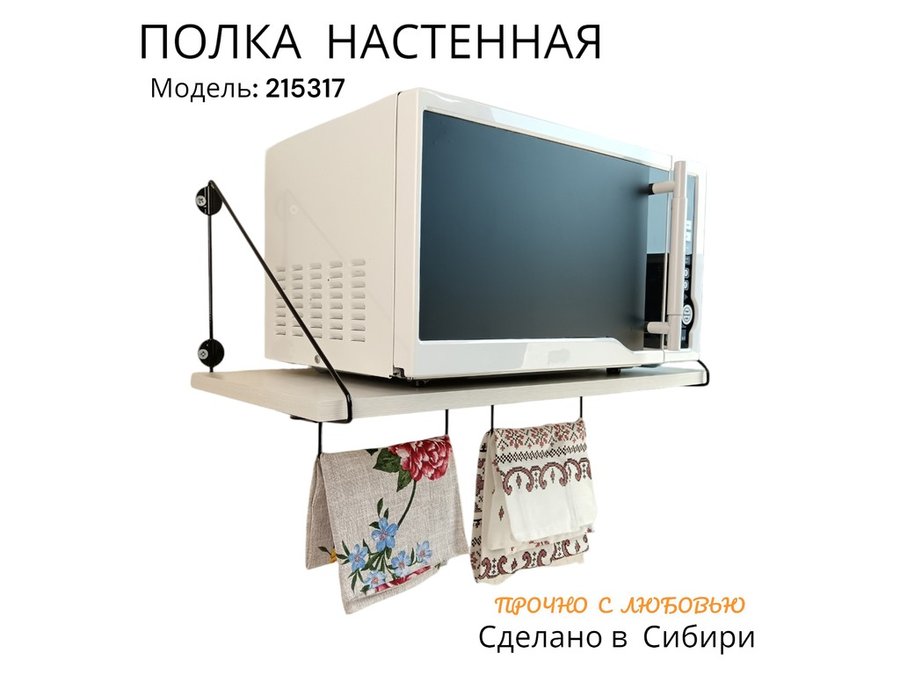 Полка для микроволновки размер 60х30 см "ПАПАОС 215317" черный и сосна выбеленная с держателями