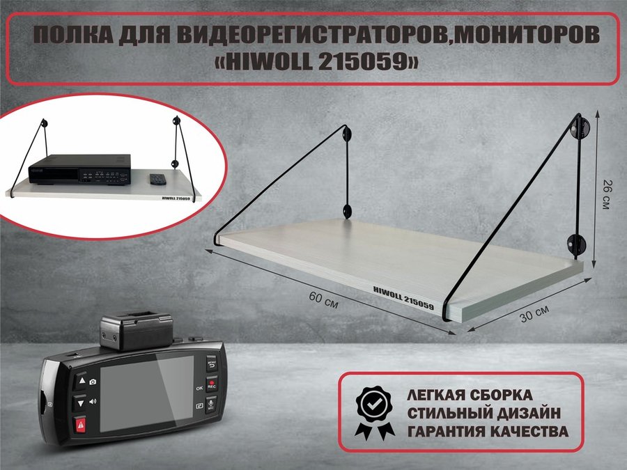 Полка для видеорегистратора и монитора "HIWOLL 215030" высота 26 см размер 60х30 см серый дуб сонома