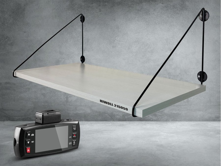 - Полка надежно крепится к стене при помощи анкеров или шурупов с дюбелями, на ней можно разместить видеорегистратор, монитор и многое другое