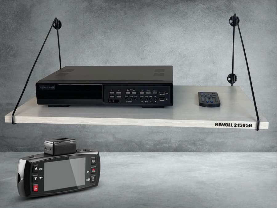 Полка для видеорегистратора и монитора "HIWOLL 215059" высота 26 см размер 60х30 см черный и сосна