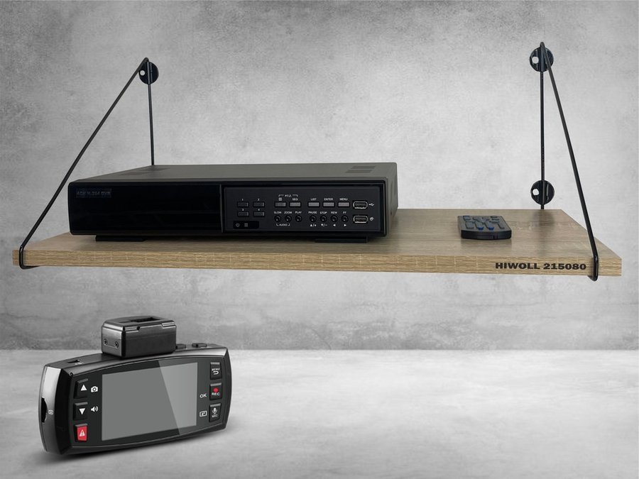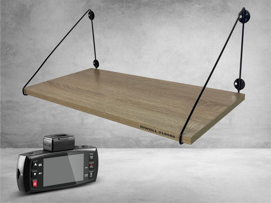 Полка для видеорегистратора и монитора "HIWOLL 215080" высота 26 см размер 60х30 см черный и дуб