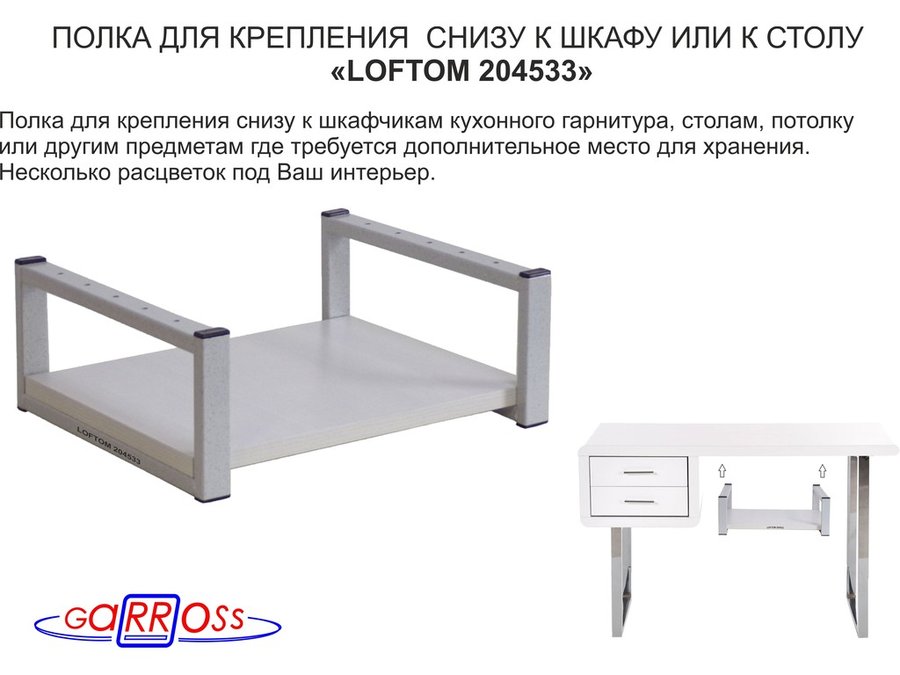 В корзину Купить в 1 клик Полка под шкаф, 15см, серая "LOFTOM 204529" крепление под стол, размер полки 30х40см, салатовый
