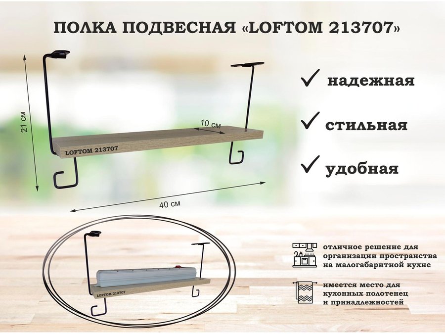 В корзину Купить в 1 клик Полка для сетевого фильтра подвесная "LOFTOM 213707" 10х40см дуб сонома, с креплением шнура