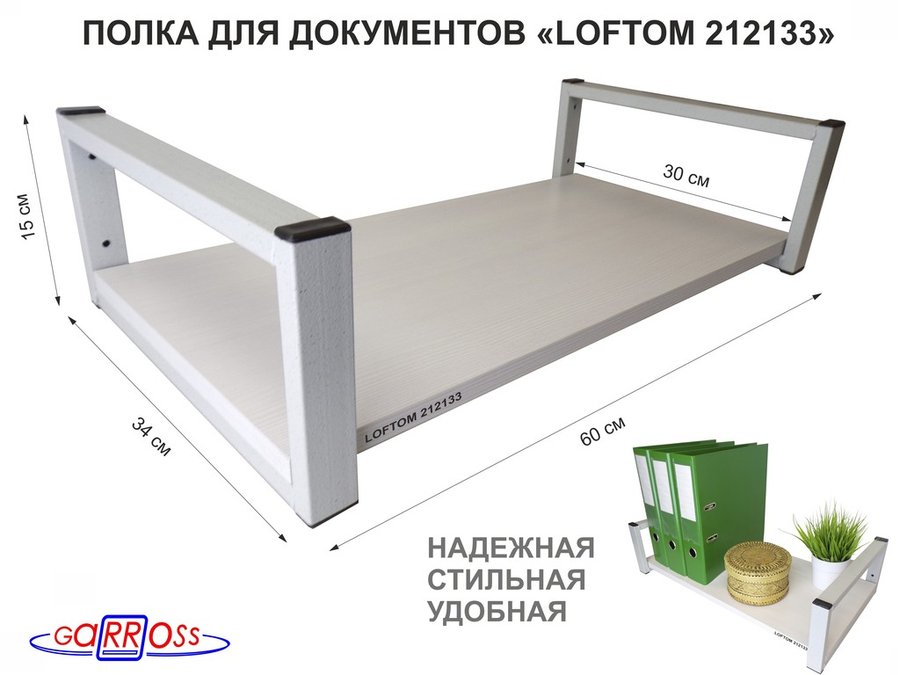. Полки для папок-регистраторов и документов "LOFTOM" высота 15 см, полки 60х30см, 1 уровень