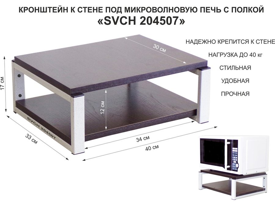 Кронштейн для микроволновки, 17см чёрный "SVCH 204821" под микроволновую печь, полка, 30х40см, венге