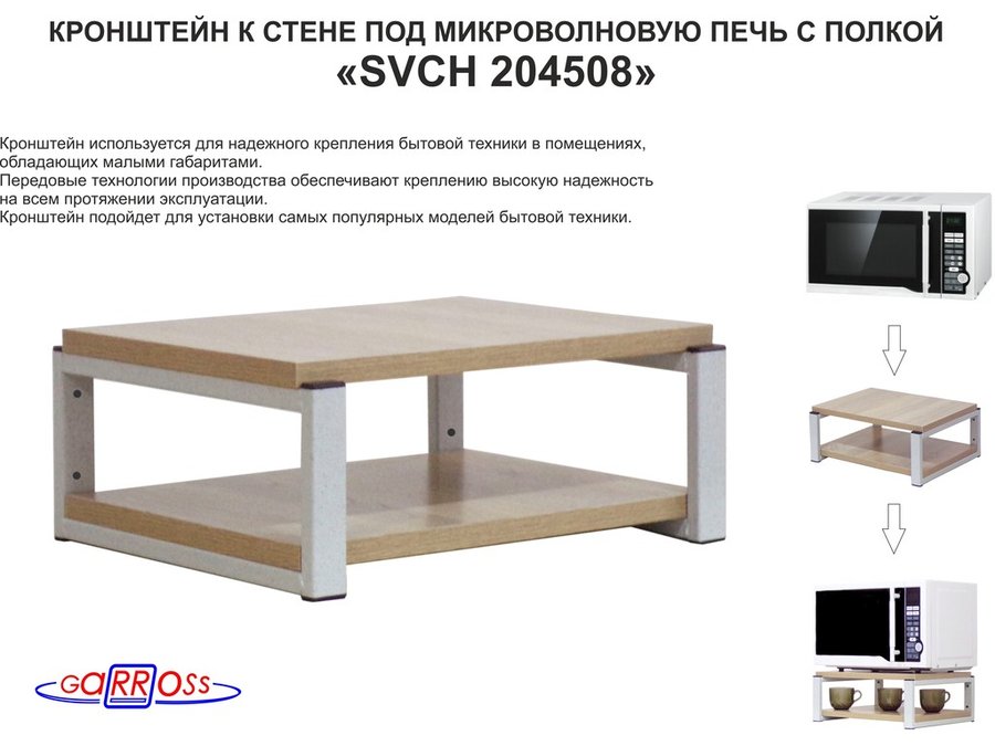 Полки для микроволновок "SVCH" кронштейны для СВЧ печей, высота 17см, 40х30см, 2 уровня