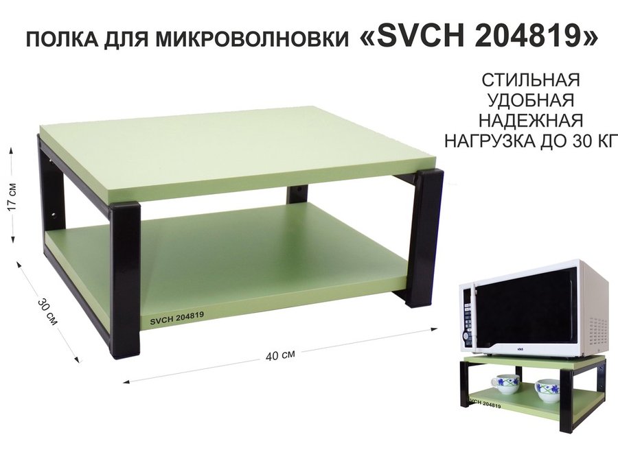 Кронштейн для микроволновки, 17см серый "SVCH 204505" под микроволновую печь, полка 30х40, салатовый