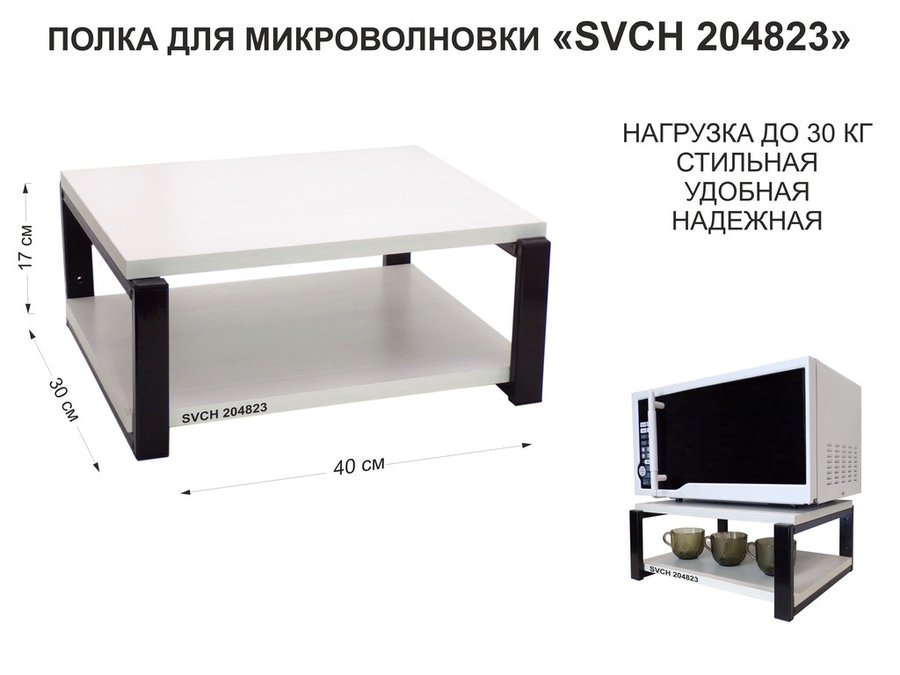 Кронштейн для микроволновки, 17см чёрный "SVCH 204819" под микроволновую печь, полка,30х40см,салатов